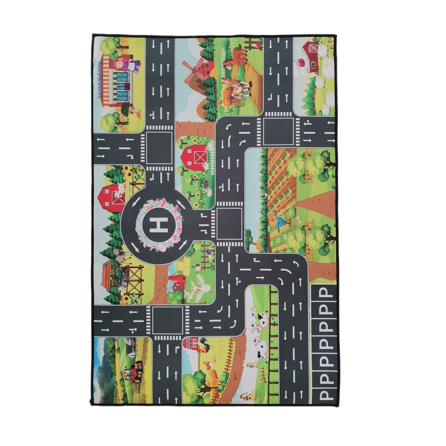 Alfombra antideslizante con diseño de la granja en colores llamativos. Desarrolla la estimulación sensorial, la creatividad y promueve la libre exploración. Tela suave engomada. Sus dimensiones son 92 x 60 cm.