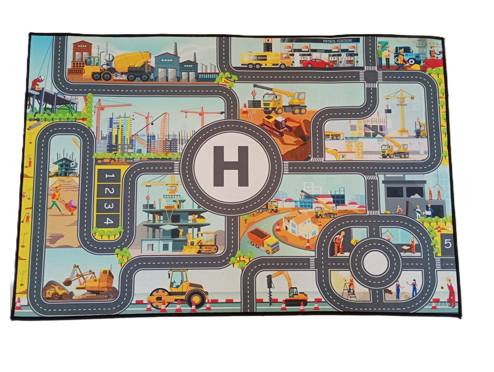 Alfombra antideslizante con diseño de diferentes oficios de la Construcción. Desarrolla la estimulación sensorial, la creatividad y promueve la libre exploración. Tela suave engomada. Sus dimensiones son 92 x 60 cm.