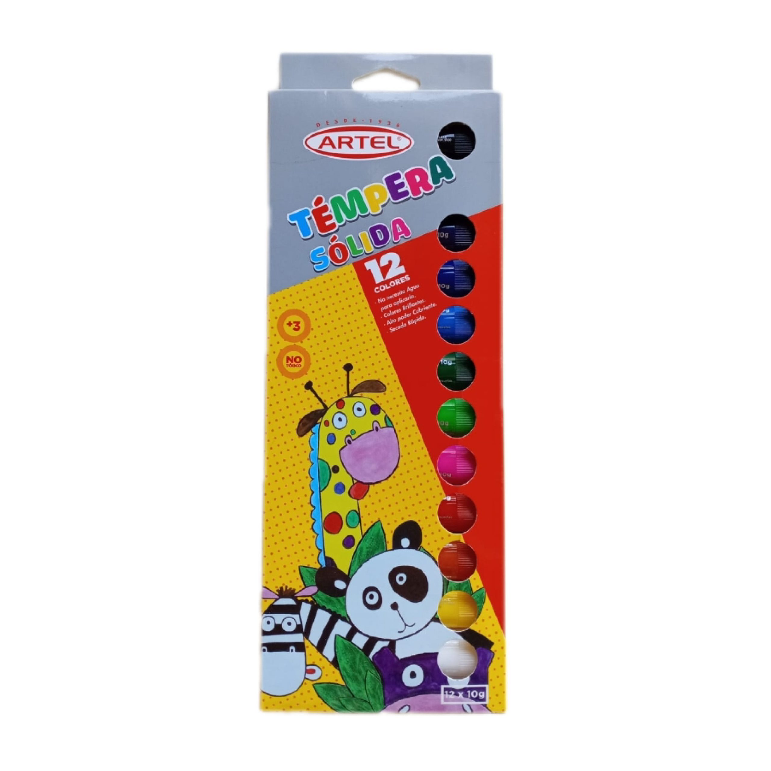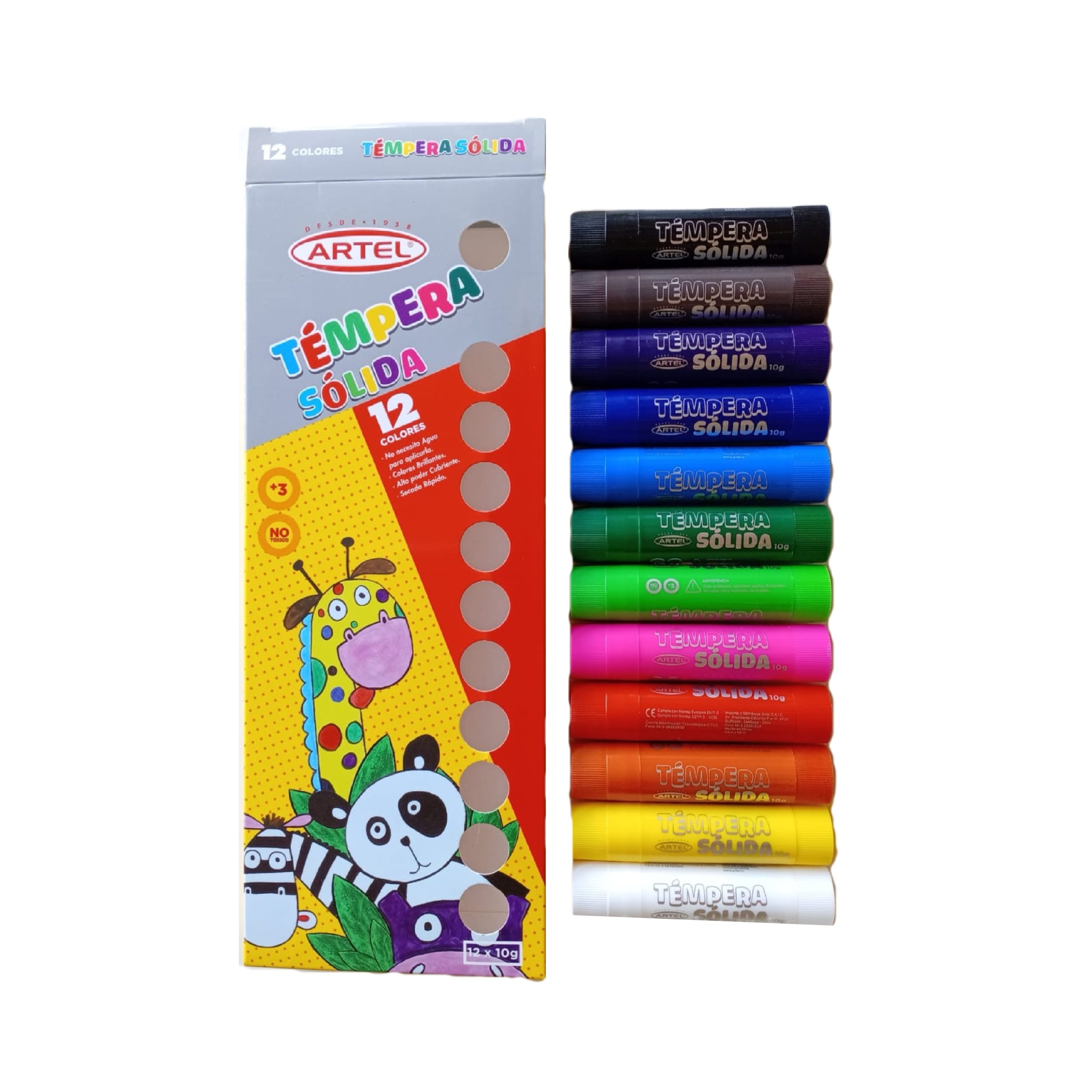 La Témpera Sólida de 12 Colores es ideal para fomentar la creatividad y la expresión artística en niños y niñas. Su formato sólido permite un uso limpio, sin agua y sin derrames, facilitando el trabajo manual y artístico tanto en el hogar como en el aula. Sus colores intensos ofrecen un trazo suave y uniforme sobre papel y cartulina, estimulando la motricidad fina, la coordinación y la imaginación de forma entretenida y segura.